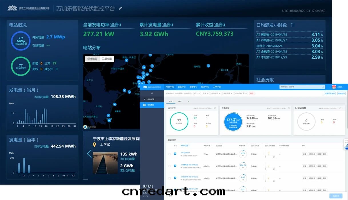另(lìng)外(wài)還(huán)提(tí)供專業的(de)万(wàn)加乐光(guāng)伏智能(néng)監控平台(tái),讓企業自(zì)己就(jiù)能(néng)了(le)解(jiě)电站的(de)狀況,保障消費者(zhě)的(de)利益。
