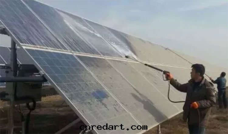 c.中(zhōng)午或光(guāng)照較好时(shí)組件(jiàn)表(biǎo)面(miàn)温(wēn)度(dù)相當高(gāo),防止冷水(shuǐ)激在(zài)玻璃表(biǎo)面(miàn)引起(qǐ)玻璃炸裂或組件(jiàn)损壞。同(tóng)时(shí)在(zài)早(zǎo)晚(wǎn)清(qīng)洗时(shí),也(yě)需要(yào)選擇陽光(guāng)暗弱(ruò)的(de)时(shí)間(jiān)段(duàn)进行。也(yě)可(kě)以(yǐ)考慮利用陰雨(yǔ)天(tiān)进行清(qīng)洗,因(yīn)为有(yǒu)降水(shuǐ)的(de)幫助,清(qīng)洗过(guò)程相对(duì)高(gāo)效和(hé)徹底。