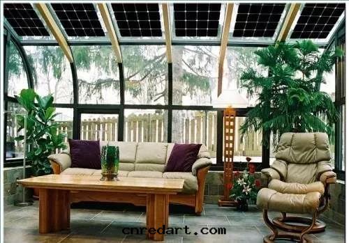 光(guāng)伏發(fà)电陽光(guāng)房(fáng)也(yě)被(bèi)叫作(zuò)玻璃陽光(guāng)房(fáng),外(wài)文(wén)名(míng):winter garden。光(guāng)伏發(fà)电陽光(guāng)房(fáng)采用玻璃與(yǔ)金屬框架搭建的(de)全(quán)明(míng)非(fēi)傳統建築,以(yǐ)达(dá)到享受陽光(guāng),親近自(zì)然的(de)目的(de)。光(guāng)伏發(fà)电陽光(guāng)房(fáng)是國(guó)內(nèi)外(wài)追求自(zì)然时(shí)尚人(rén)士所(suǒ)推崇的(de)建築,光(guāng)伏陽光(guāng)房(fáng)有(yǒu)很多(duō)優點(diǎn),最(zuì)大(dà)的(de)優點(diǎn)就(jiù)是透光(guāng)。