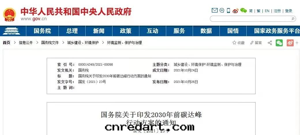 國(guó)務(wù)院(yuàn)印(yìn)發(fà)2030年(nián)前(qián)碳达(dá)峰行動(dòng)方(fāng)案(àn):大(dà)力發(fà)展(zhǎn)新(xīn)能(néng)源,推进光(guāng)伏發(fà)电多(duō)元(yuán)布(bù)局(jú)